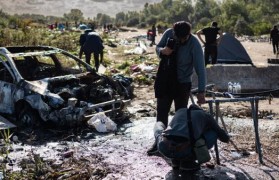 在驱车前往大合成难民营的途中,我们经过一个公交车站,车站周围聚集了50多...