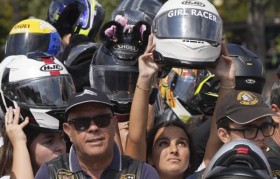 周日,大约18万名摩托车手聚集在葡萄牙中部的法蒂玛圣母圣殿,参加第九届年...